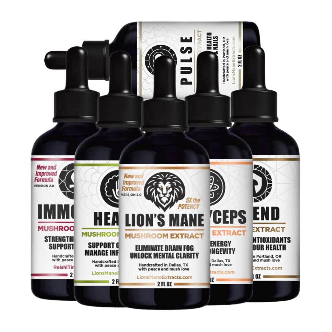 In this bundle you're getting ALL 6 of our mushroom extracts and saving 30%!